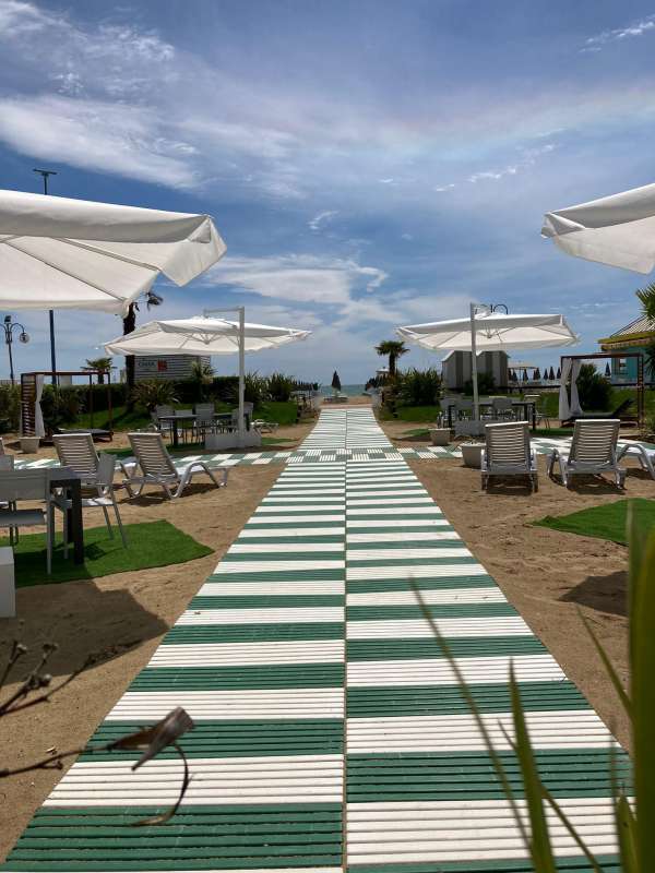 La tranquillità ed il comfort sono garantiti dal generoso posizionamento dei 1200 ombrelloni oltre ai 30 ampi e comodi gazebi , alcuni dotati di cassaforte, dal servizio costante di pulizia della sabbia, dalla costante attenzione dei bagnini di salvataggio, dai gruppi di docce al coperto dotate di acqua calda, dai servizi igienici riservati, dal parco giochi per bambini.